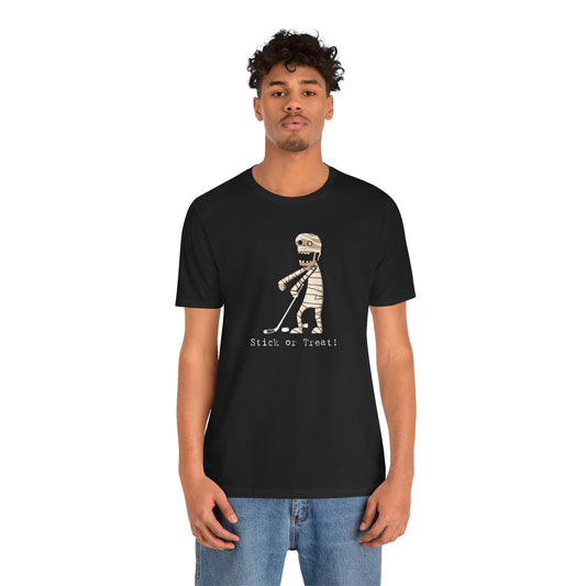 Stick or Treat Mummy Playing Ice Hockey Halloween Shirt (Adult)