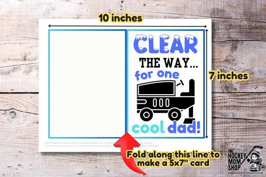 Clear the Way for One Cool Dad Zamboni Printable 5x7" Folded Card