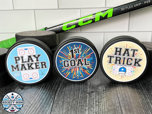Ice Hockey 1st GOAL Milestone Puck Stickers Vinyl Sticker Pack - 3 Sticker Set