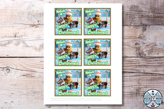 Ice Hockey Gingerbread Goalie "Have a SWEET Christmas!" Gift Tags