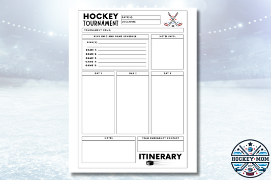 Ice Hockey Tournament Itinerary Printable Planner Pack