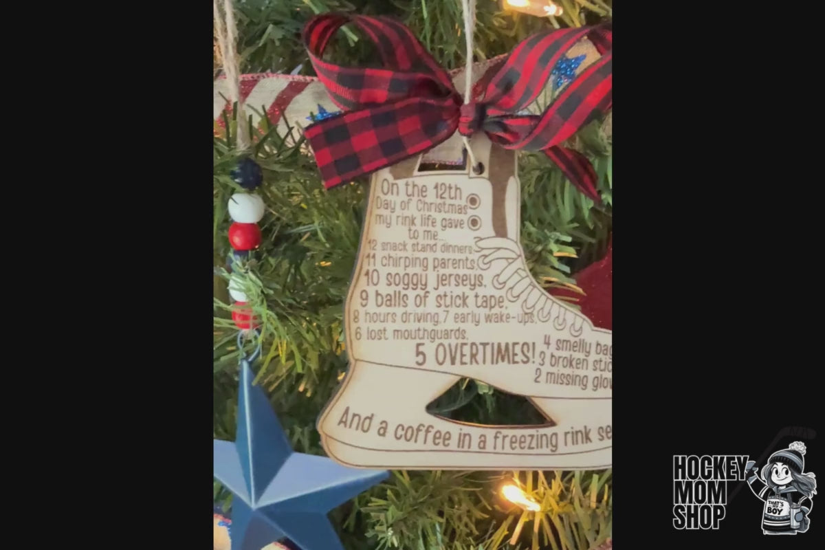 Celebrate the chaos, coffee, and cold seats of hockey season with this laser cut wooden Christmas ornament featuring our original “12 Days of Christmas – Ice Hockey Edition” poem!